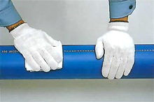 インジケーターにより融着部の検査を行います。インジケーターが左右とも継手表面より隆起していることを確認してください。