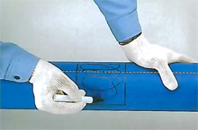 サドルの融着面の範囲に油性ペン等でまんべんなくマーキングします。