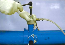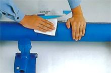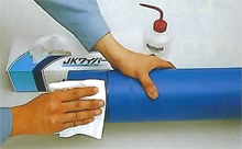 サドルの融着面と管の切削面を、アセトン等を浸み込ませたペーパータオルで清掃してください。